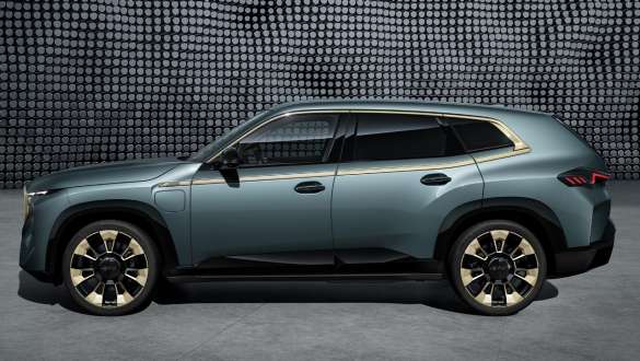 รูปโฉมด้านข้างผสานภาพลักษณ์ความแกร่งของรูปทรง Coupé เข้ากับสัดส่วนที่ทรงพลังและสไตล์ที่โดดเด่น เช่น กระจกที่สีเข้มที่สุดในหมู่รถ BMW ทุกรุ่น เสริมภาพลักษณ์ความหรูหราเหนือระดับด้วยสี Night Gold ของล้ออัลลอยน้ำหนักเบาขนาด 23 นิ้วและแถบคิ้วแต่งที่สร้างความโดดเด่นไม่ซ้ำใครให้กับรูปทรงของ BMW XM ใหม่